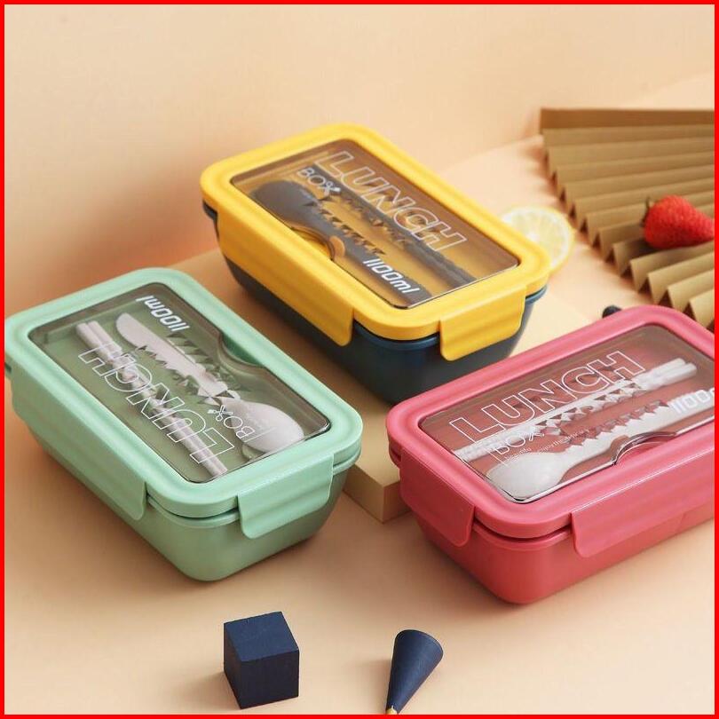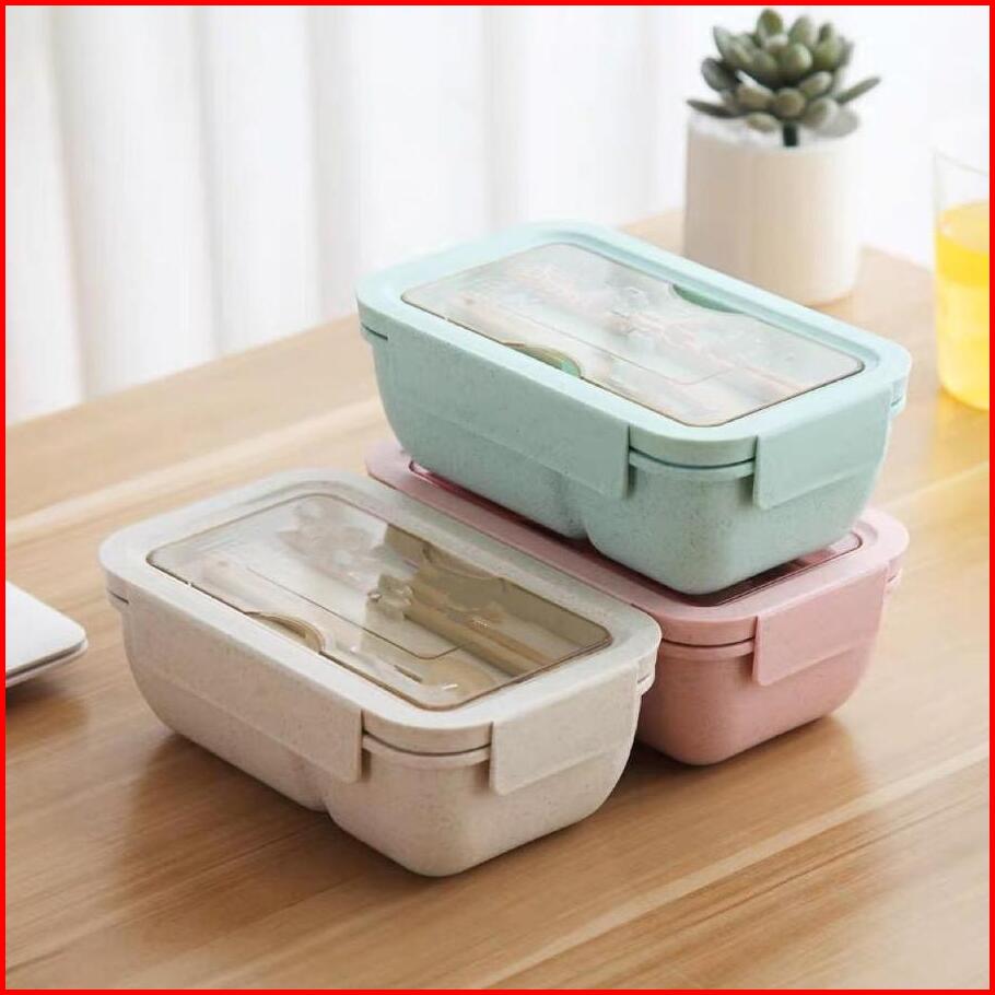 Lunch Box Bento Kotak Tempat Makan Transparan 1100ml Bpa Free Set Tepak Bekal Jerami 3 Sekat