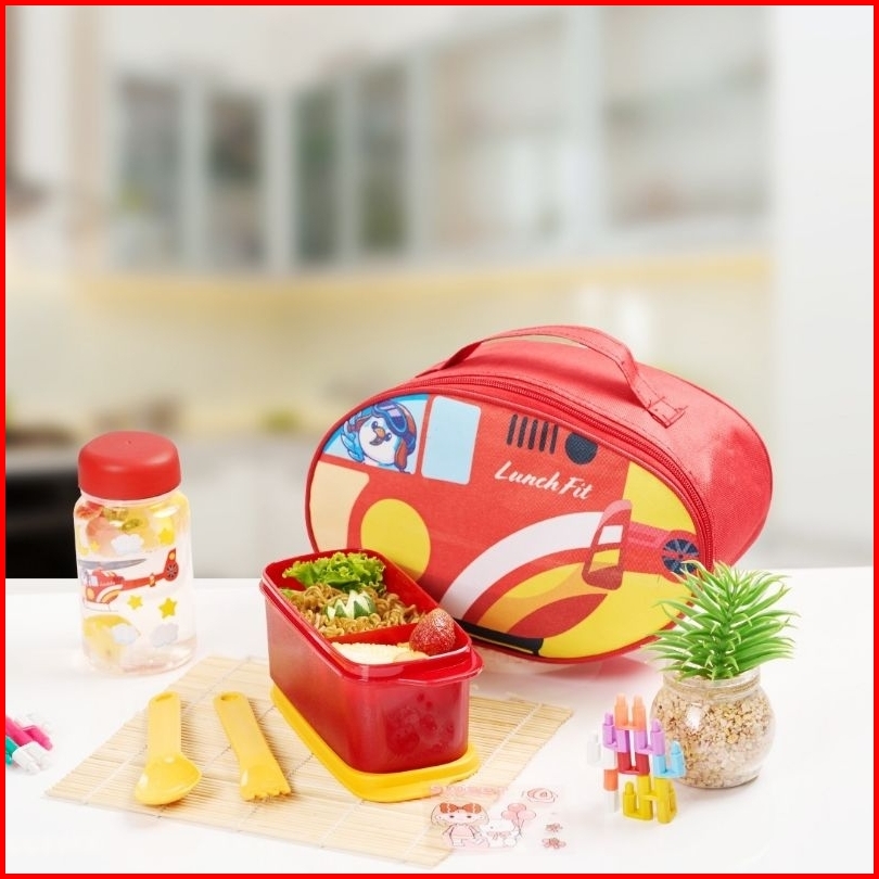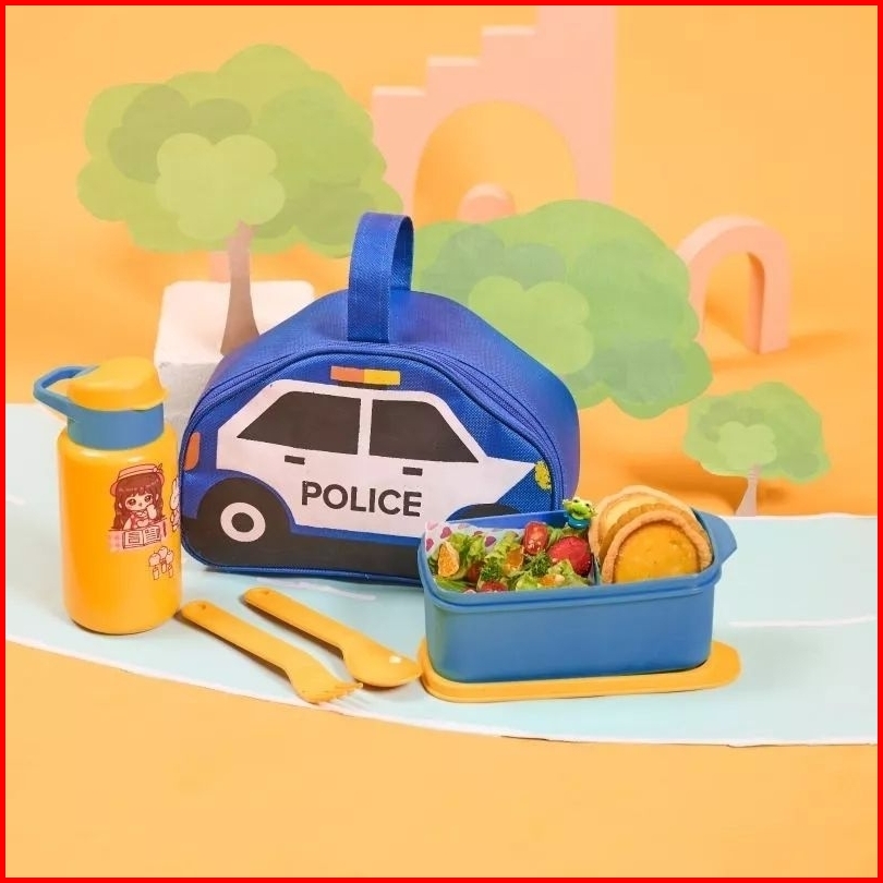 Cpm Tas Bekal Anak Car Series Lunchbox Set Botol Free Sendok Garpu-police Firetruck