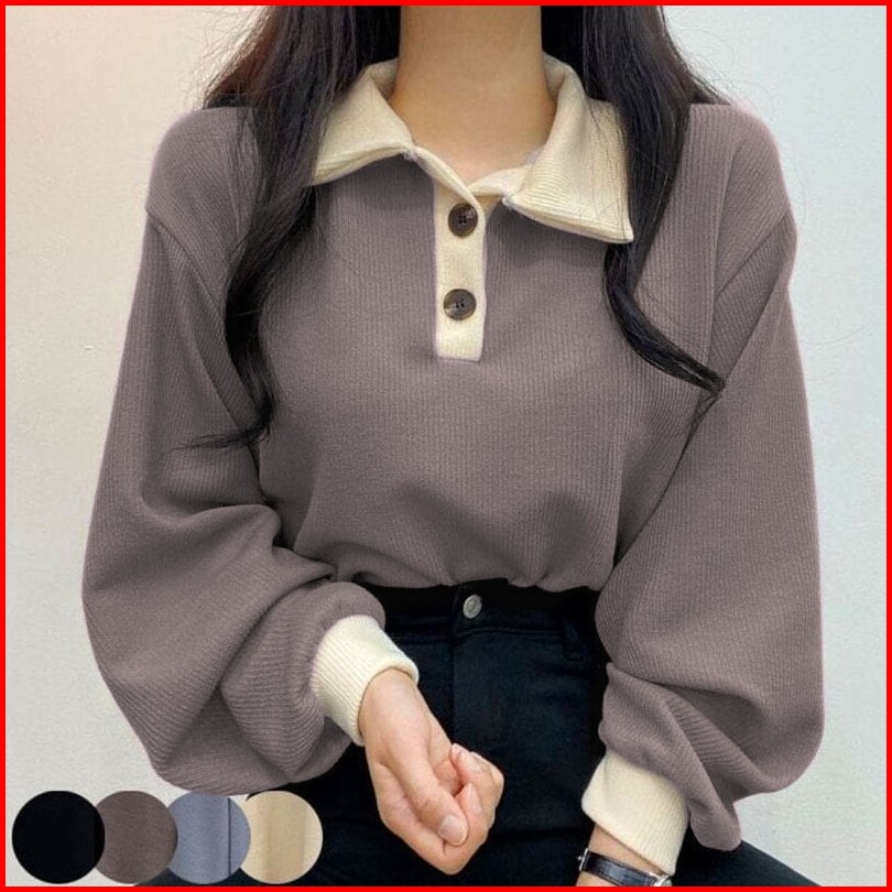 Sweater Wanita - Collar Girl Sweater Oversize - Sweeter Wanita Korean Style