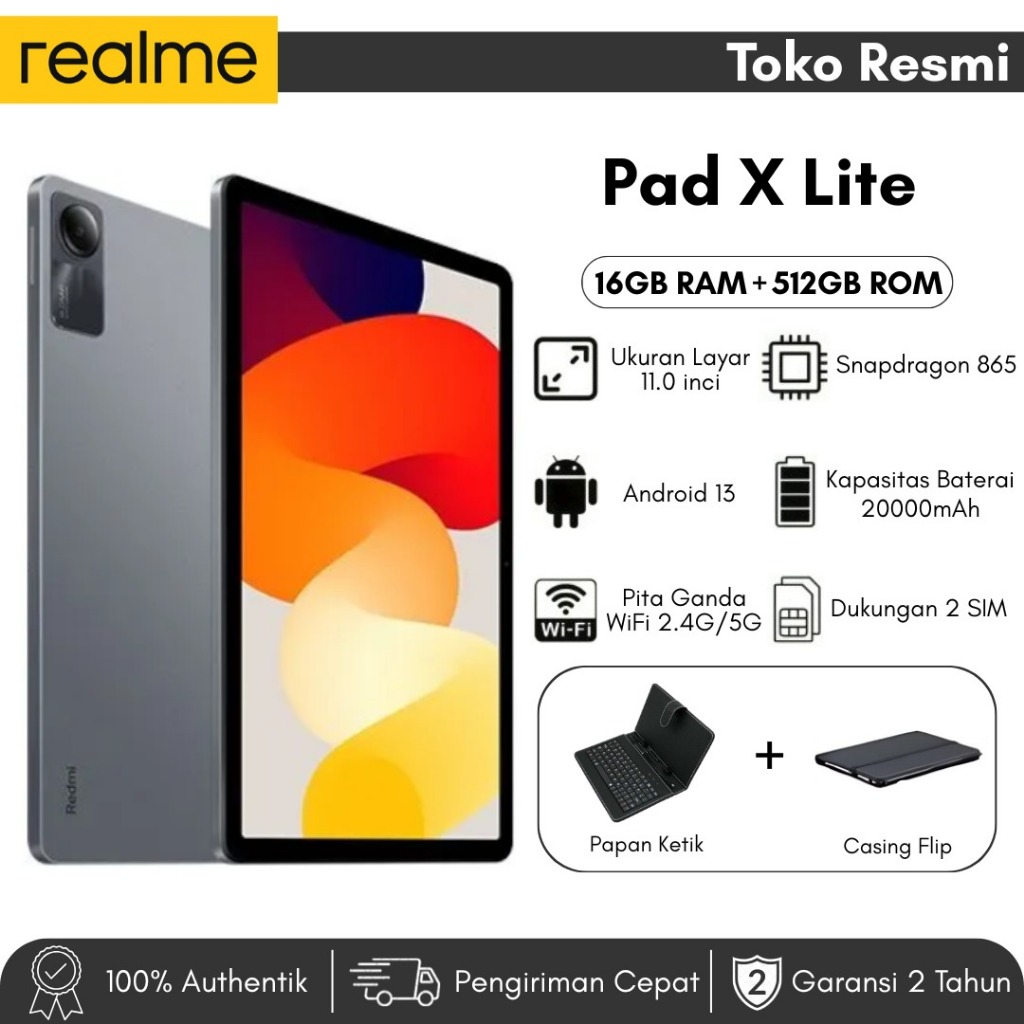 Realme Pad X Lite | 16GB+512GB | Gratis Stylus + Keyboard | Bisa Canva Excel | 11” Tablet