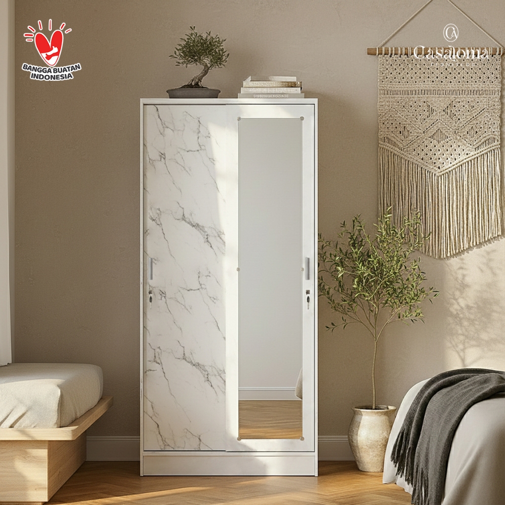 Casaloma Furniture Lemari Pakaian 2 Pintu Sliding Japandi