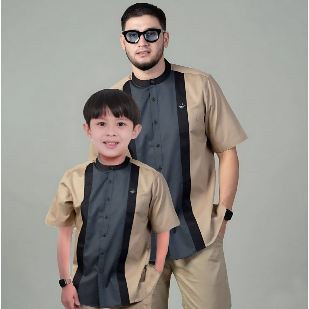 [Star] Baju Koko Couple Ayah Dan Anak Laki Laki Harga Terpisah Kemeja Kurta Kerah Mandarin Lengan Pendek Bahan Toyobo S