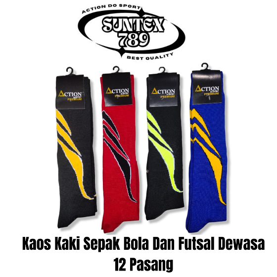 12 Pasang Kaos Kaki Sepak bola Dan Futsal Dewasa Motif Tanduk, Panjang Dan Tebal, Kaos kaki Olahraga