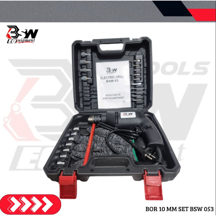 FULL AKSESORIS Mesin Bor Listrik SET Impact Drill Electric Drill 10mm Bolak Balik set electrik drill