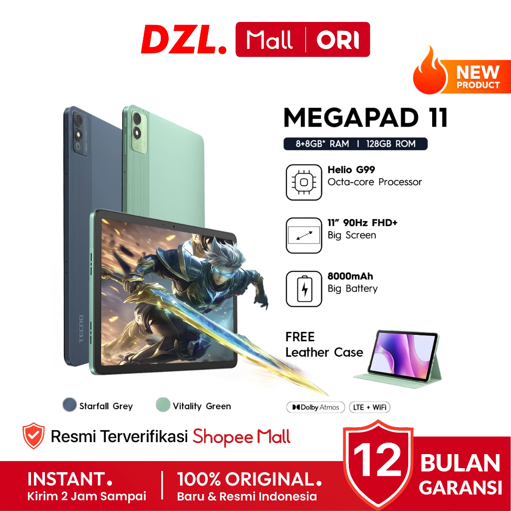 DZL - Tablet TECNO MEGAPAD 11 8/256 8/128 GB SIM 4G Original Resmi Official Store Tab Ori Pad Gaming
