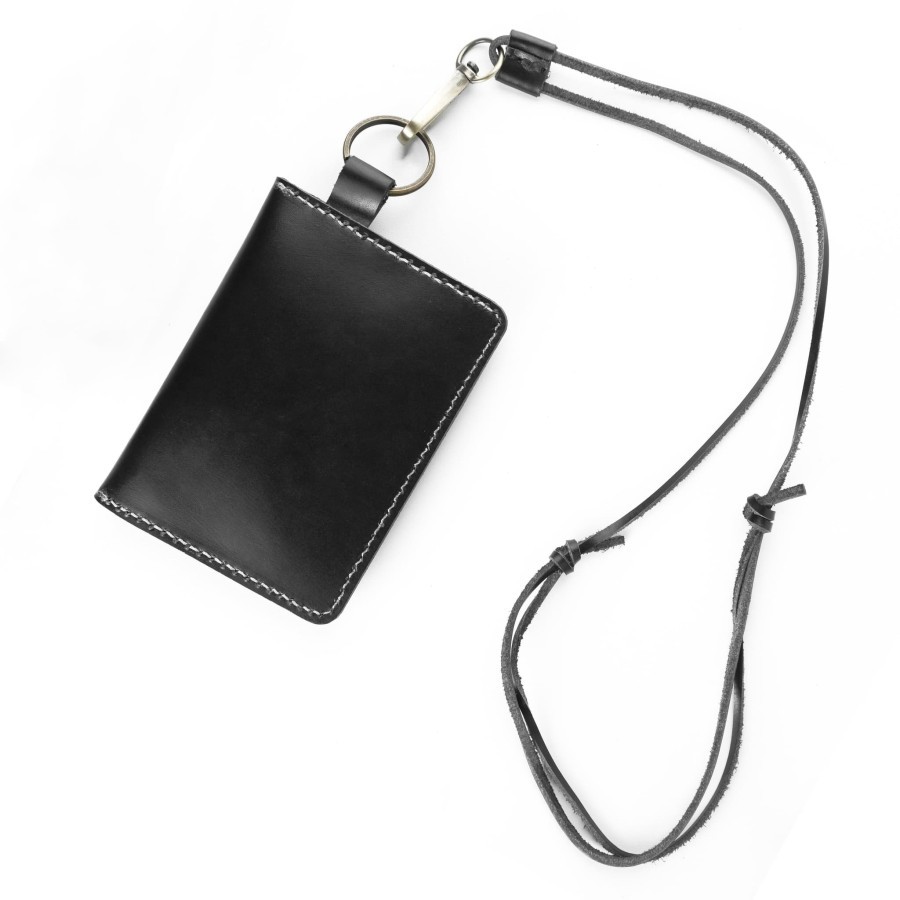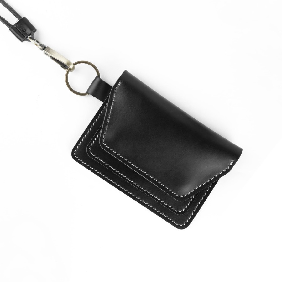 Dompet kartu gantung simpel kulit asli dengan tali leher - hanging wallet model kancing