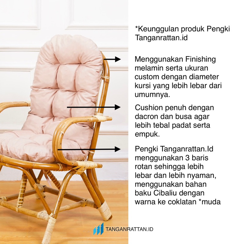 KURSI TERAS PENGKI ROTAN DAN BANTAL FULL UNTUK DEWASA / KURSI SANTAI MINIMALIS ARMCHAIR ROTAN FINISHING MELAMIN