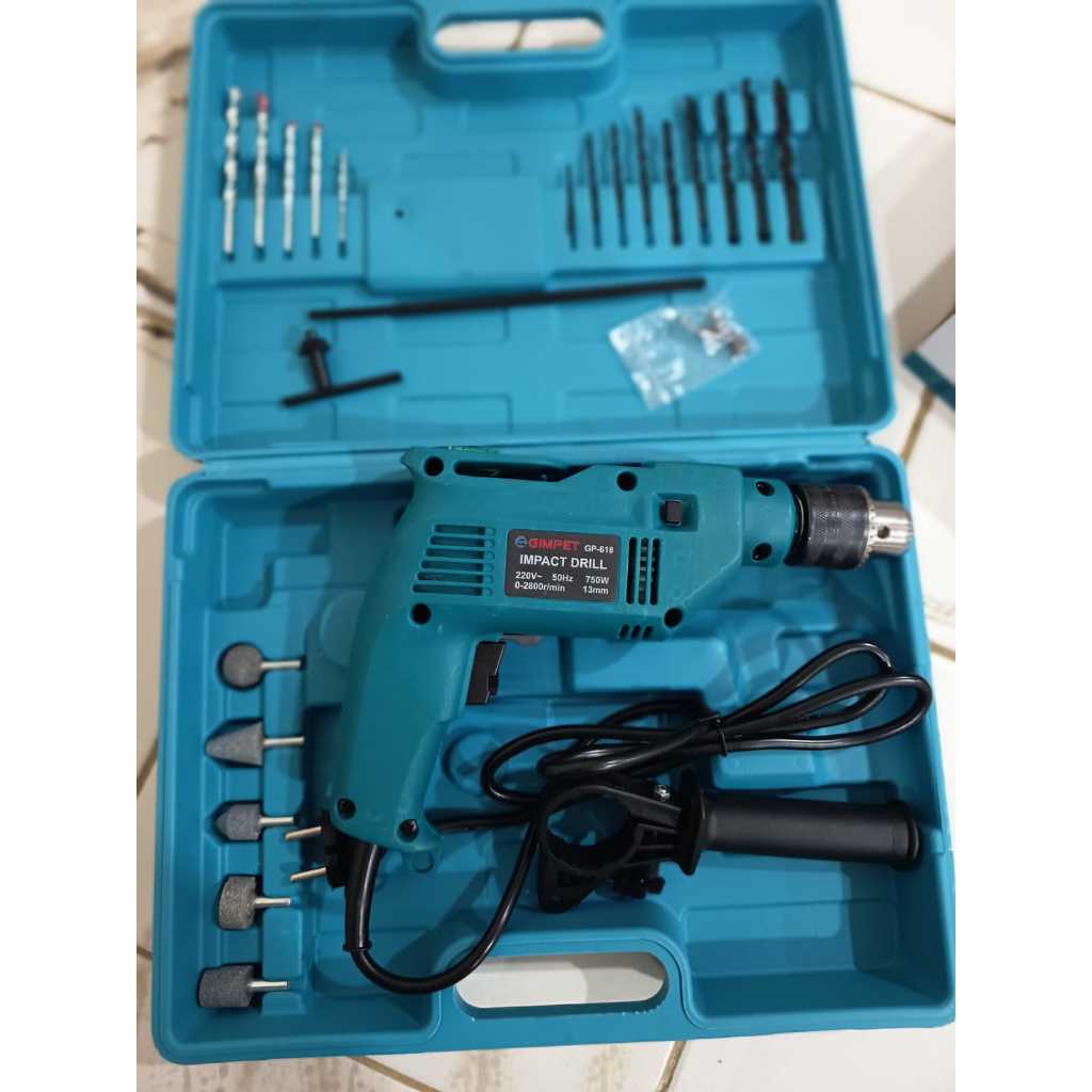 GIMPET 13mm mesin bor impact listrik 750W impact bor Set Bor tangan listrik bisa bolak balik bor tembok/BOR BETON FULLSE