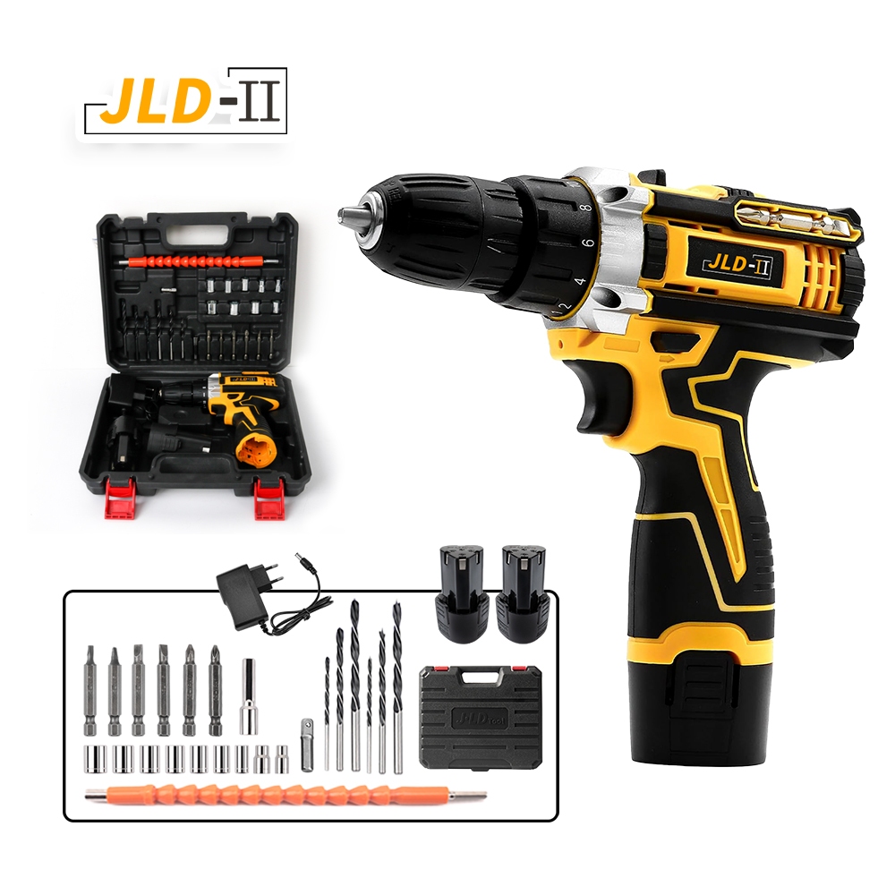 JLD-II Mesin bor baterai 15V mesin bor cas 2 baterai promo 10mm 2-Speed bor tangan tanpa kabel bor baterai full set
