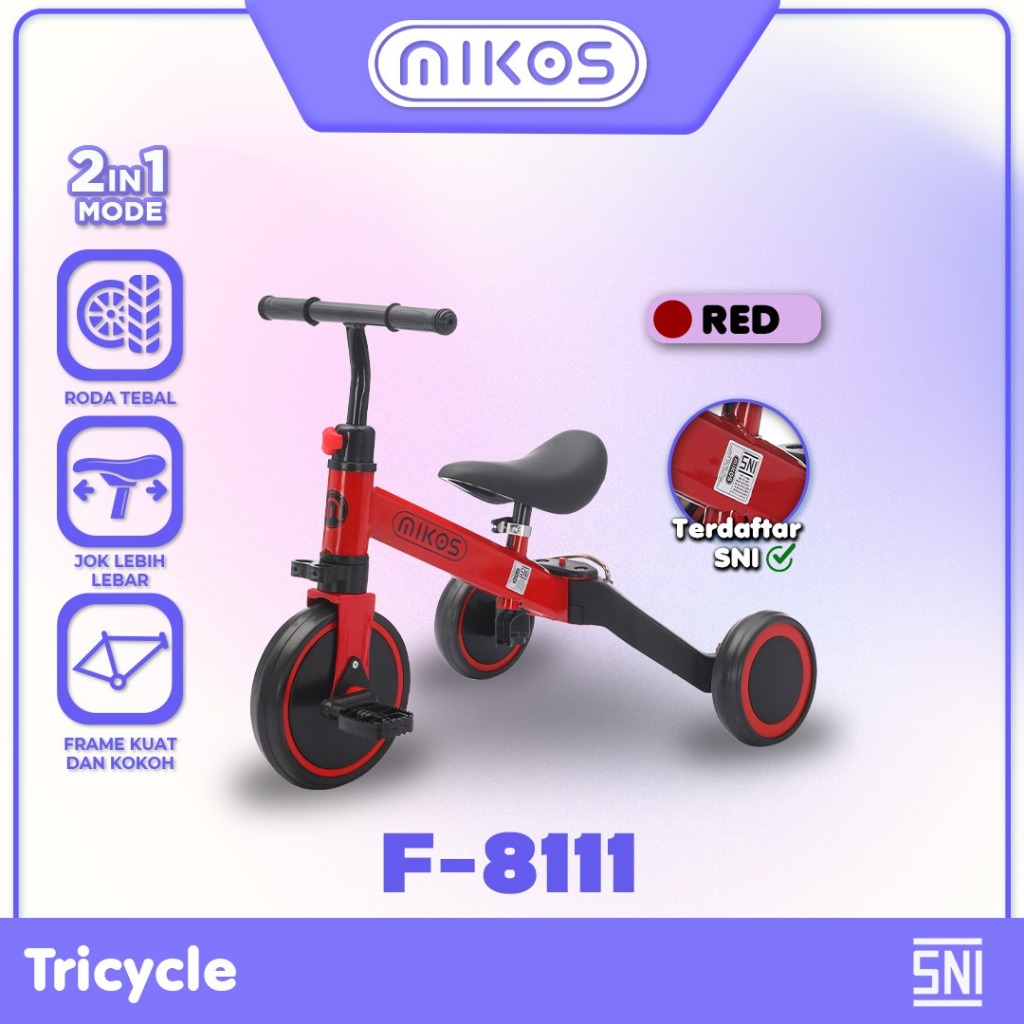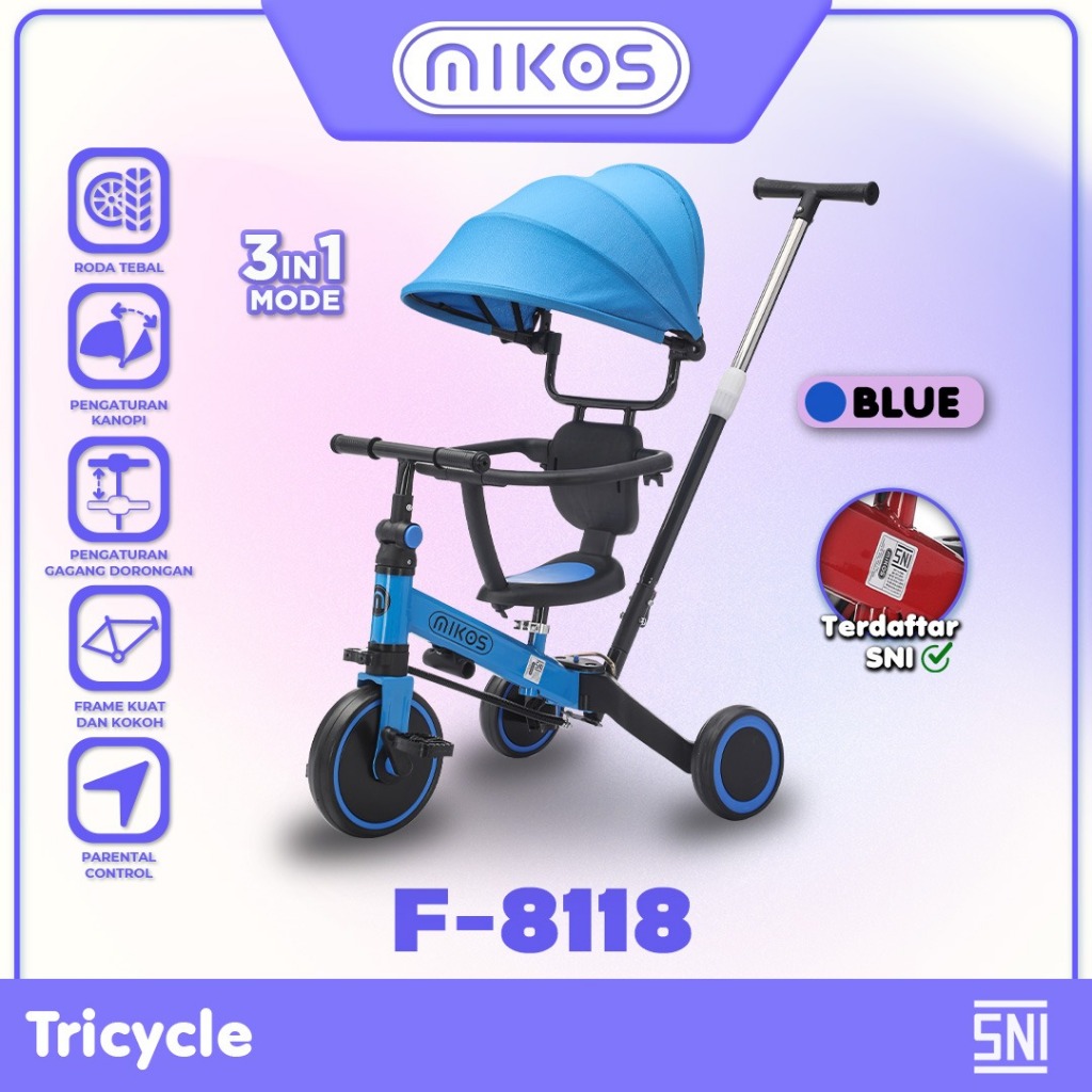 MIKOS Sepeda Anak Roda 3 Balance Bike Sepeda Roda Tiga Kanopi 3in1 Tricycle Stroller Baby Sepeda Anak 1 Tahun F-8118 / F