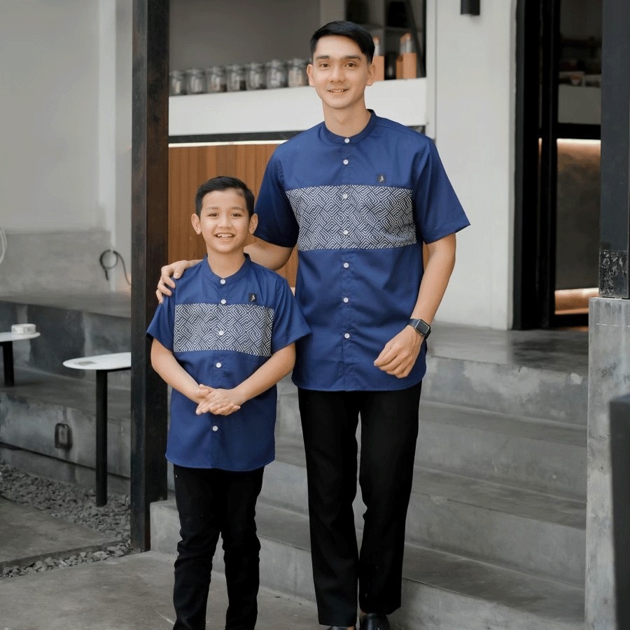 [Star] Baju Koko Kurta Couple Ayah & Anak Umur 4-12 Tahun Lengan Pendek - Motif Raudha - Bahan Katun Rekomendasi Seragam