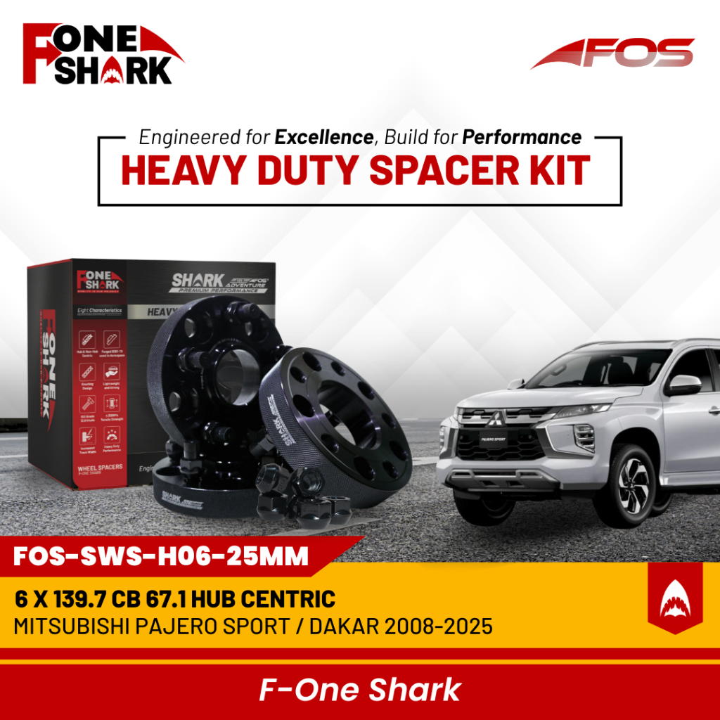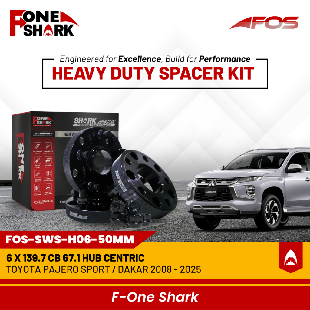 F-One Shark FOS Heavy Duty Wheel Spacer Adaptor Roda Velg Mitsubishi Pajero Sport / Dakar 2008-2025 Forged Alumunium All