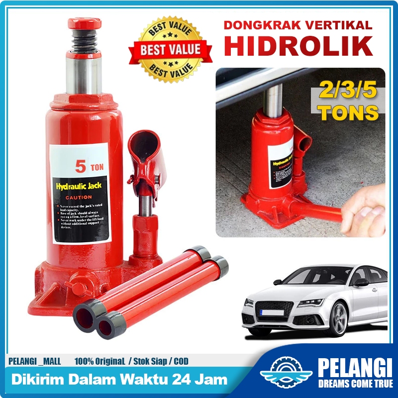 2/3/5/10TON Dongkrak Mobil Hidrolik Hydraulic Jack Dongkrak Botol Mobil SUV/Pickup (Anti Karat + Rem Darurat)