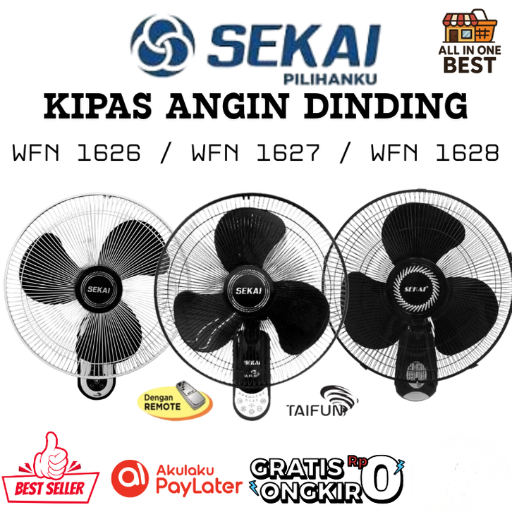 Kipas Angin Dinding Sekai Original Kipas Angin Wall Fan Tornado 16 Inch Taufan & Eco Series WFN 1626 1627 1628 RC