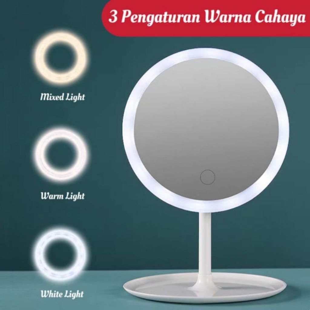 Cermin Makeup Mirror LED Light Tombol Touch Screen Aesthetics Portable Design / Cermin Makeup 3 Warna Lampu Bisa Diputar