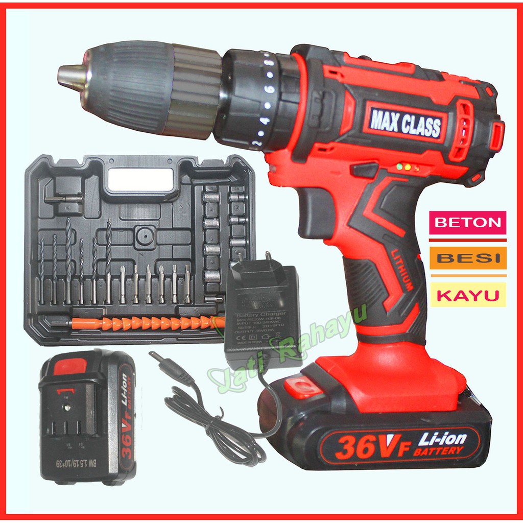 MAX CLASS MESIN BOR BATERAI , CORDLESS DRILL , BOR OBENG BOLAK BALIK CHARGING 12V - 36V