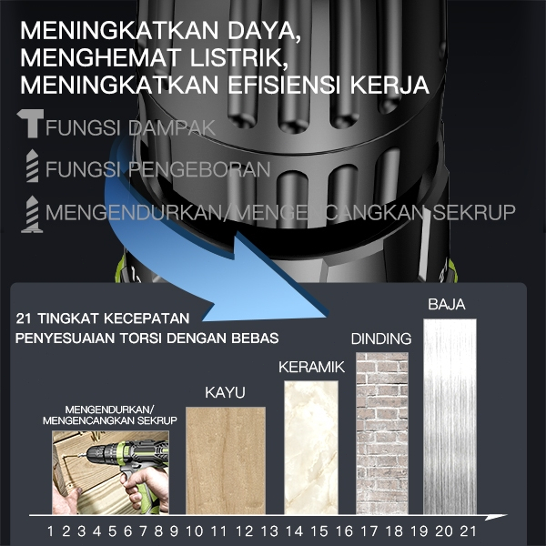 ZPER 12V 3 Speed Bor Listrik Mesin Bor Baterai Tangan Cordless Drill Battery impact drill Cordless Electric Drill Impac