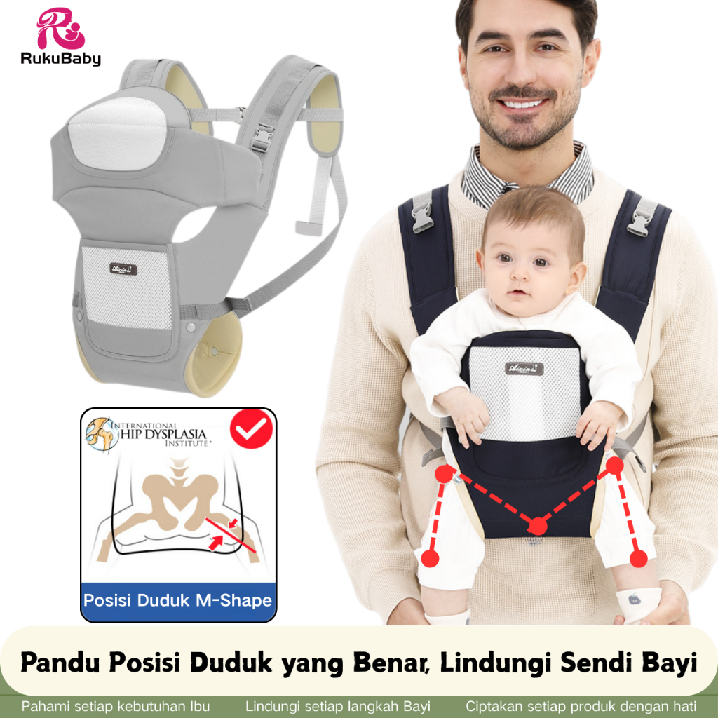RukuBaby Gendongan Bayi M Shape Newborn - Gendongan SSC Ergonomis yang Nyaman untuk Ibu dan Bayi, dengan Dukungan Pinggu