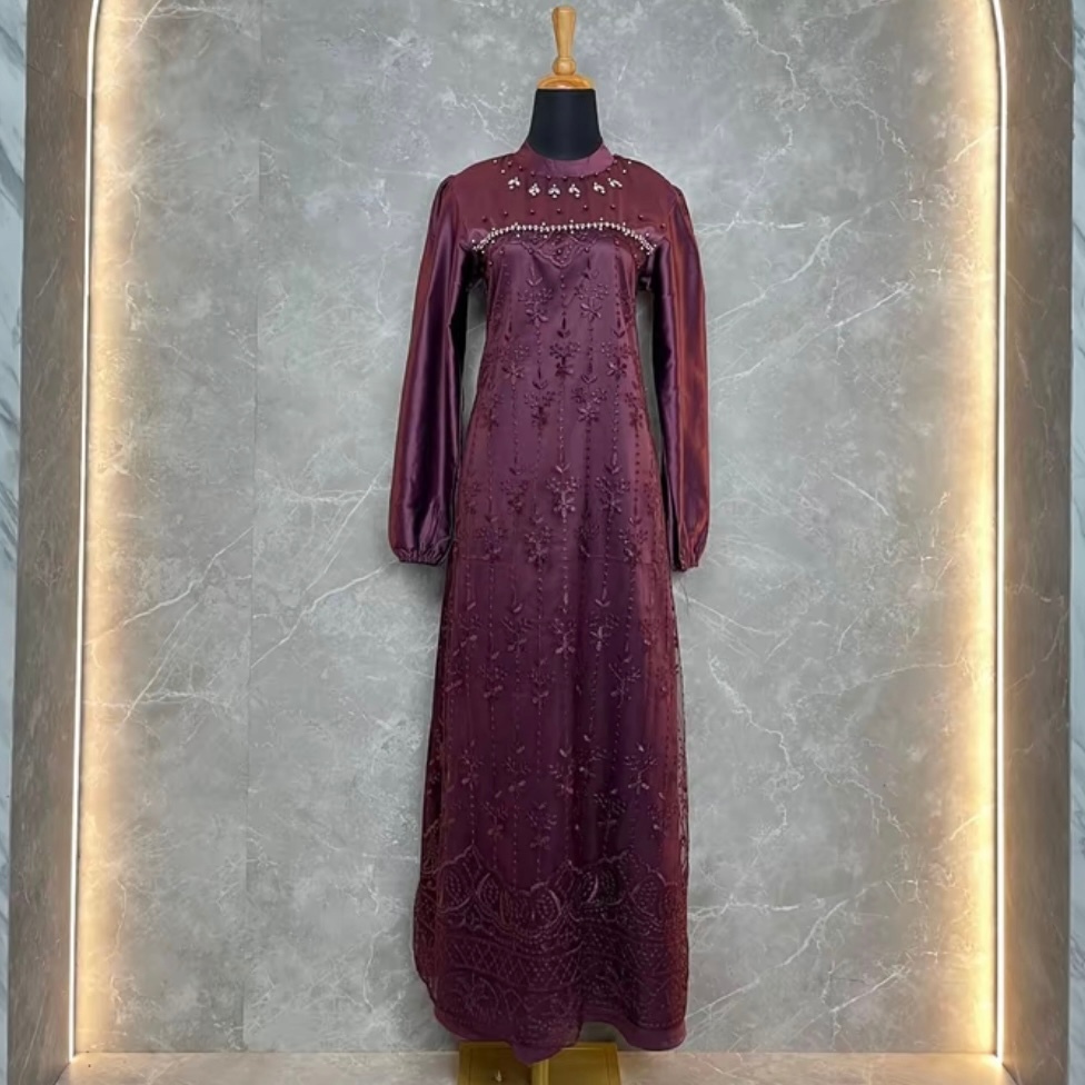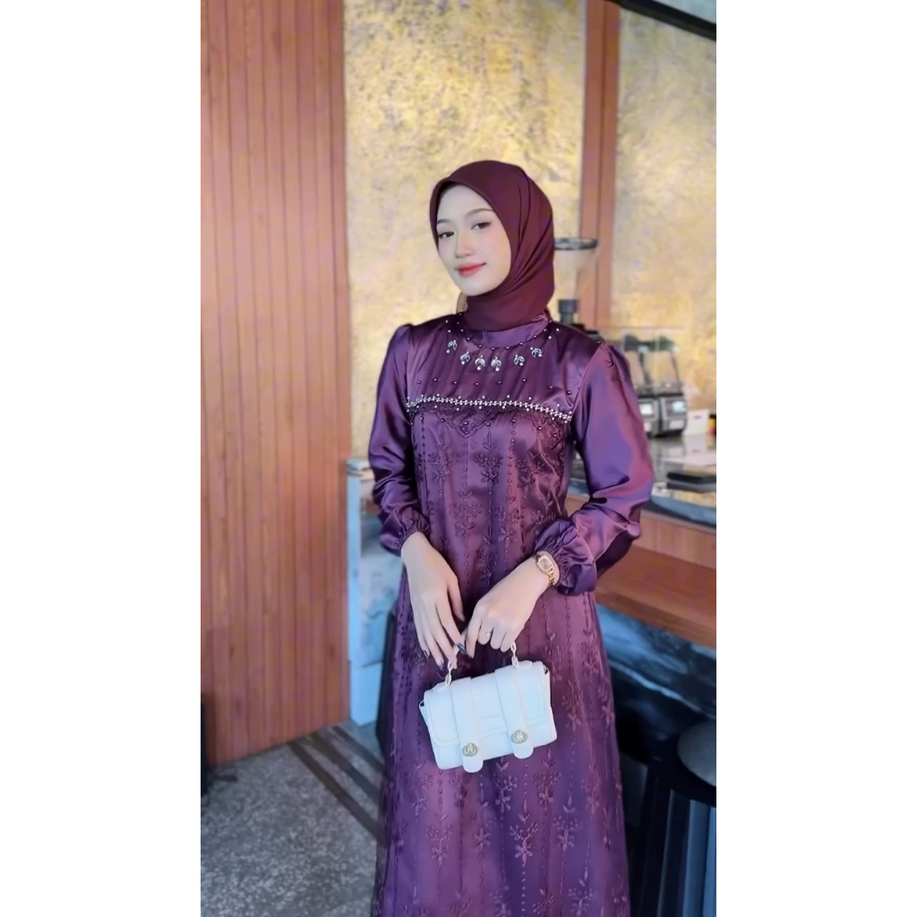 Dress Amanda Premium Brukat Viral Gamis Trend Lebaran 2026 Ootd Kondangan Pesta Remaja Kekinian Mewah