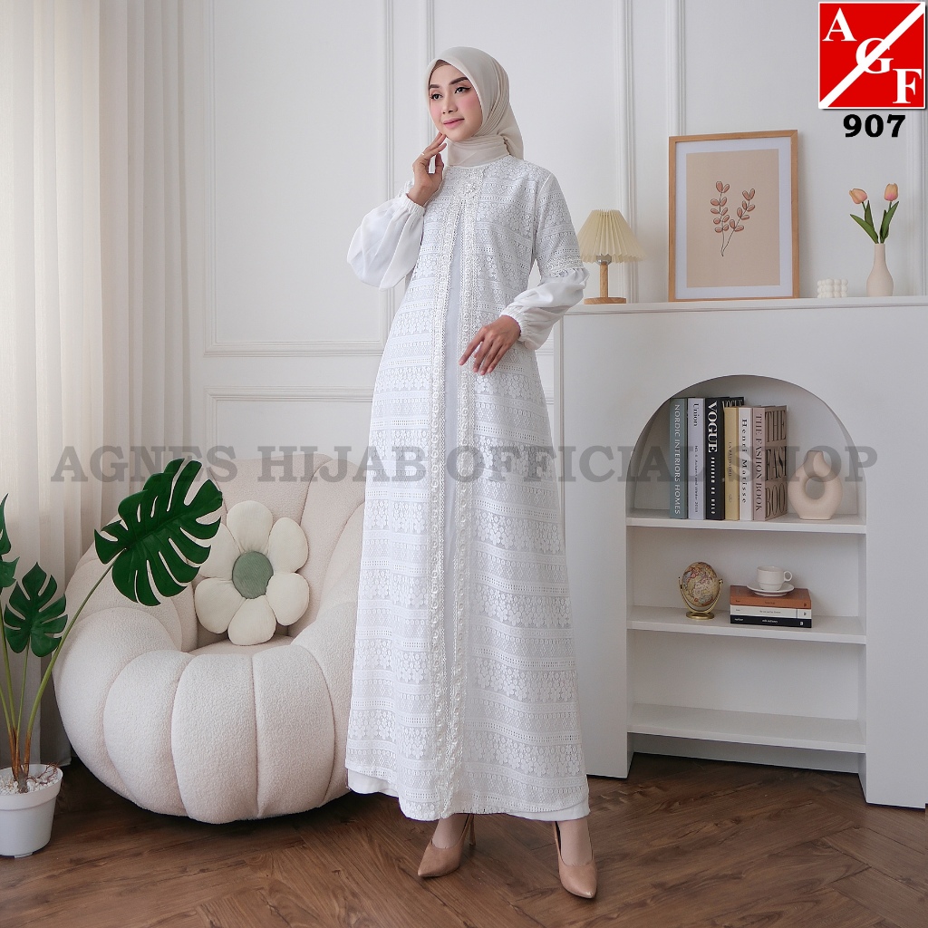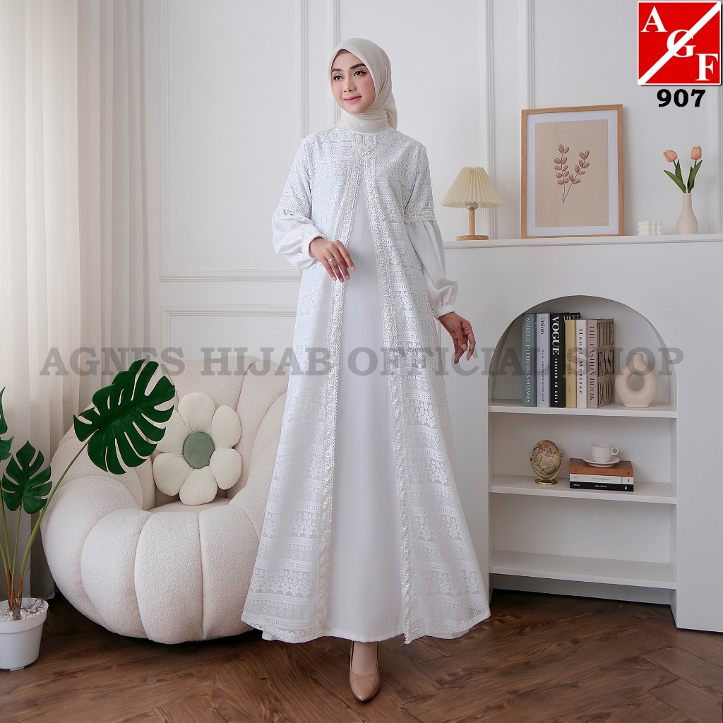 Agnes Hijab - Lavela Dress Gamis Putih Lebaran 2026 Terbaru Baju Muslim Wanita Abaya Dewasa Remaja Model Baru Elegan Mew
