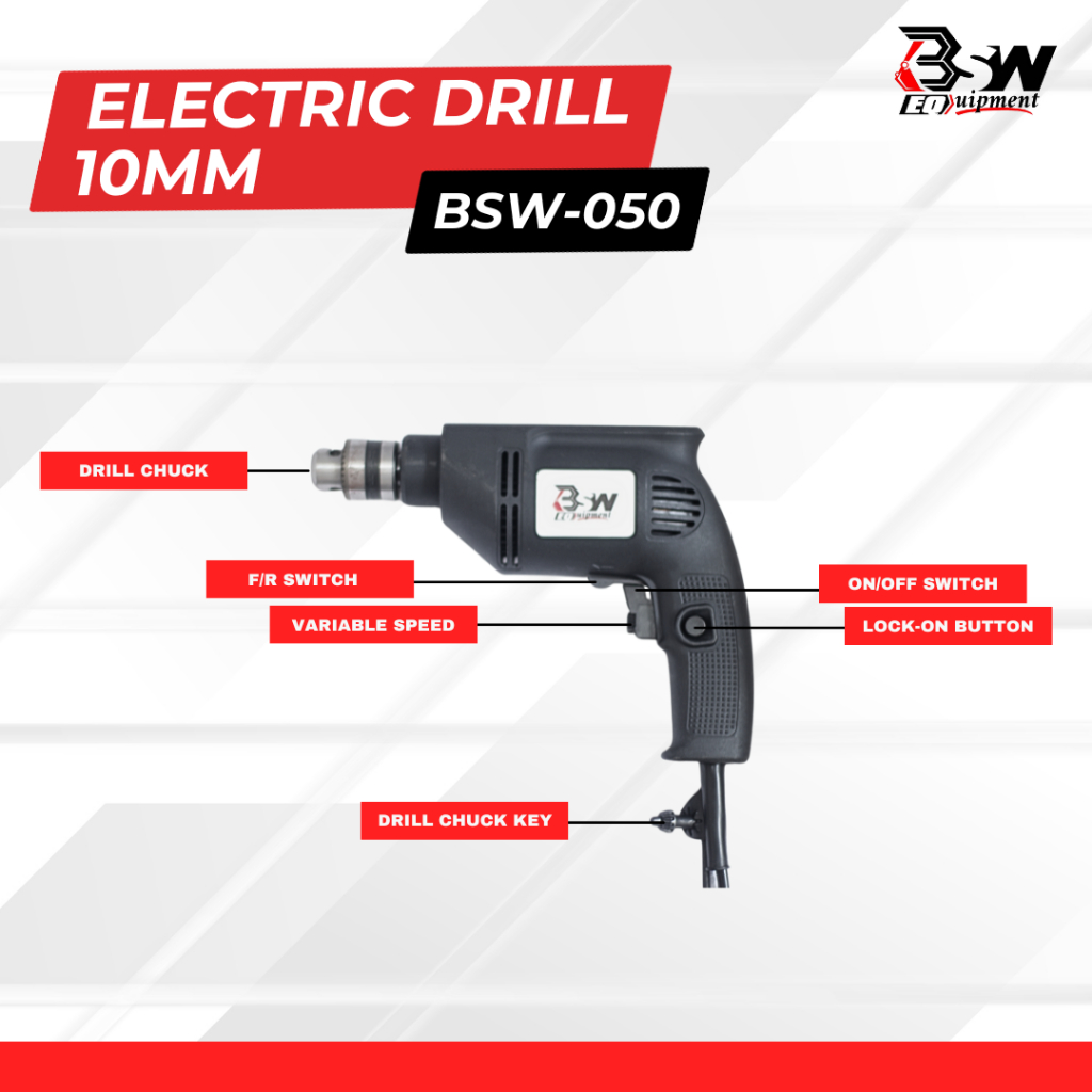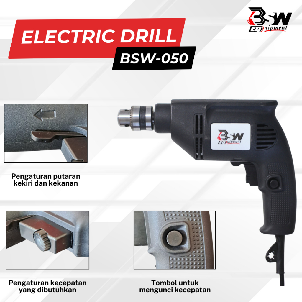 Mesin Bor Listrik 10mm Bolak Balik Electric Drill Bor Beton Kayu Besi full tembaga kualitas terbaik BSW