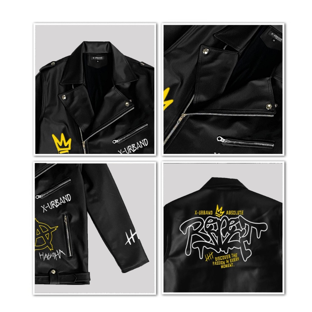 X Urband Absolute Jaket Kulit Sintetis Rock N Roll Bordir Respect A540