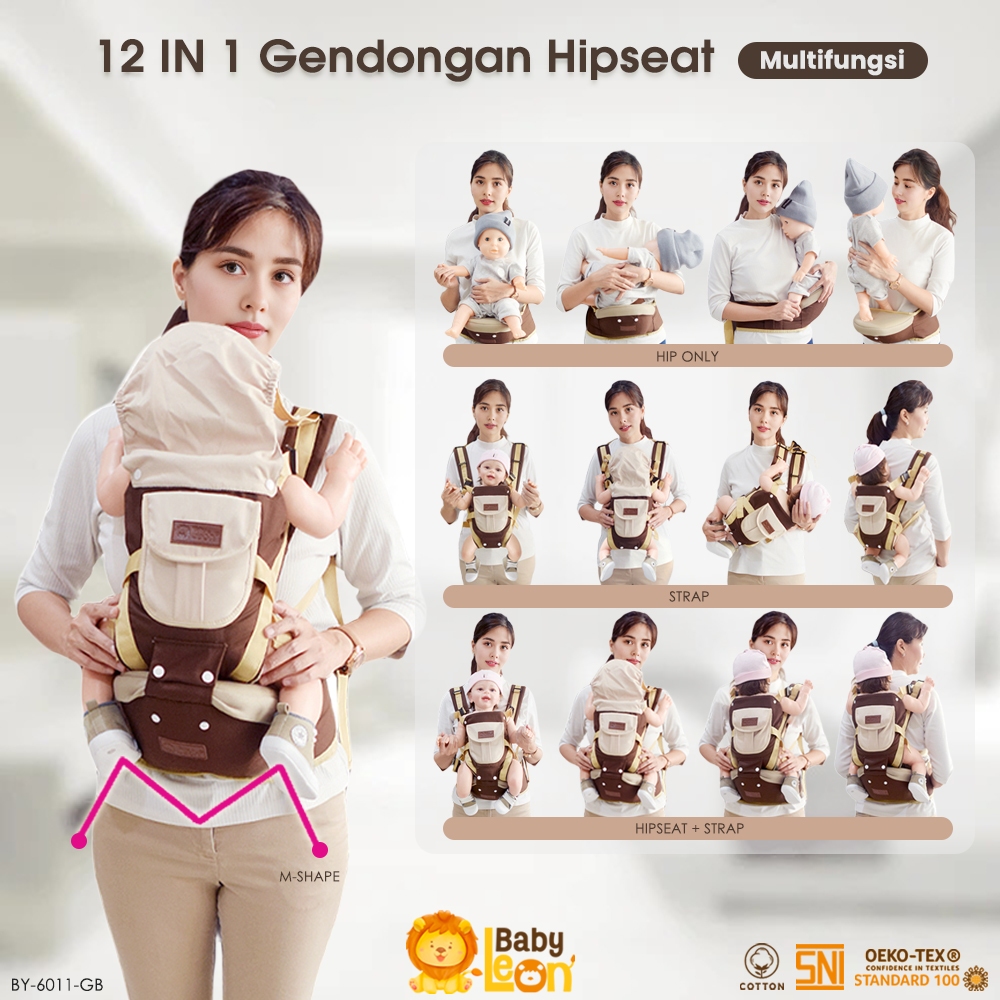 BABYLEON Gendongan Bayi 0-3Th 12in1 Gendongan Depan BABY LEON Hipseat Gendongan Bayi Depan + Penutup Kepala Gendongan An
