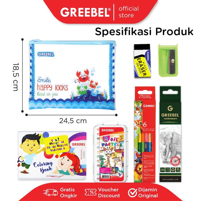 GREEBEL [7 in 1] Paket Alat Tulis Tempat Pensil / Stationery Set 720 / Bingkisan Hampers Ulang Tahun