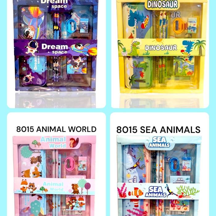 5 IN 1 SET PENSIL LUCU KARAKTER DINOSAURUS DINO SET ALAT TULIS SEKOLAH KOTAK PENSIL LUCU DREAM SPACE