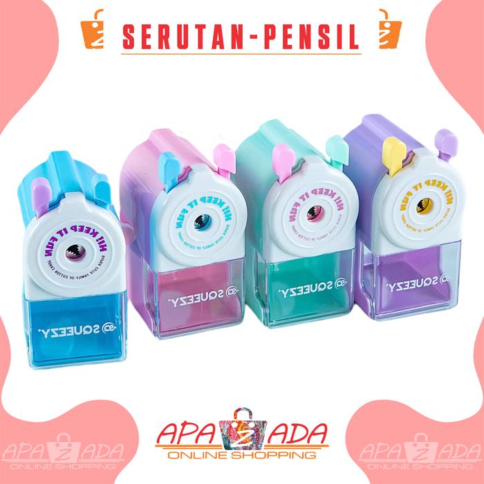 Apazada Serutan Pensil Putar Motif Keep It Fun Biru Pink Ungu Stationery Alat Tulis