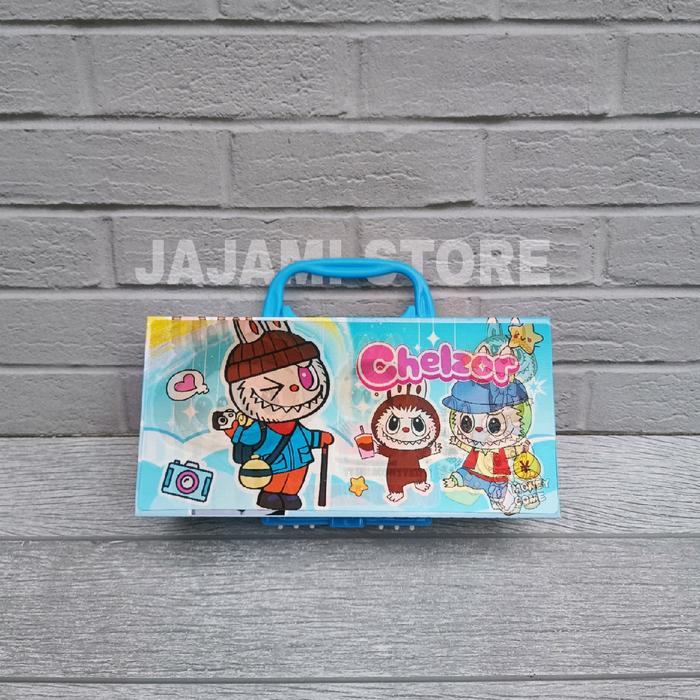Labubu Kode/ 3 tingkat Karakter Labubu/ anak Viral Perlengkapan Sekolah Stationery Alat Tulis Pensil