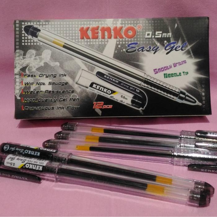 Pen Easy Gel Kenko (12pcs) Tinta Hitam Stationery Merah