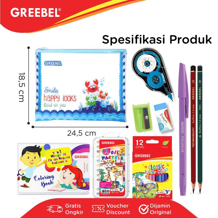 GREEBEL [9 in 1] Paket Alat Tulis Tempat Pensil / Stationery Set 720T / Bingkisan Hampers Ulang