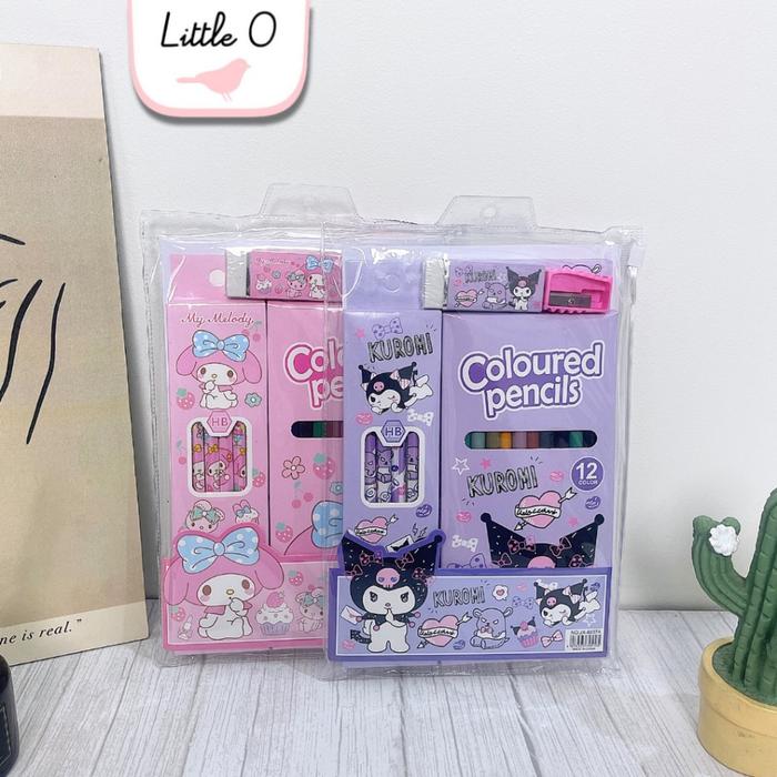 5in1 Sanrio Paket Coloured Pencils Paket Belajar Mewarnai Goodiebag Alat Tulis Sekolah Pensil Warna