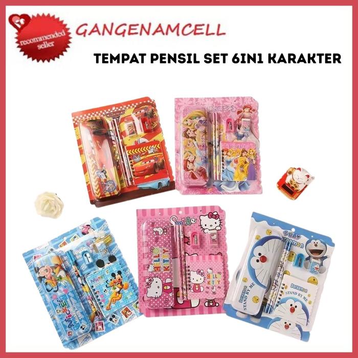 Tempat Pensil Set 6in1 Alat Tulis Sekolah Karakter Kartun 6pcs Peralatan Menulis Anak Lucu