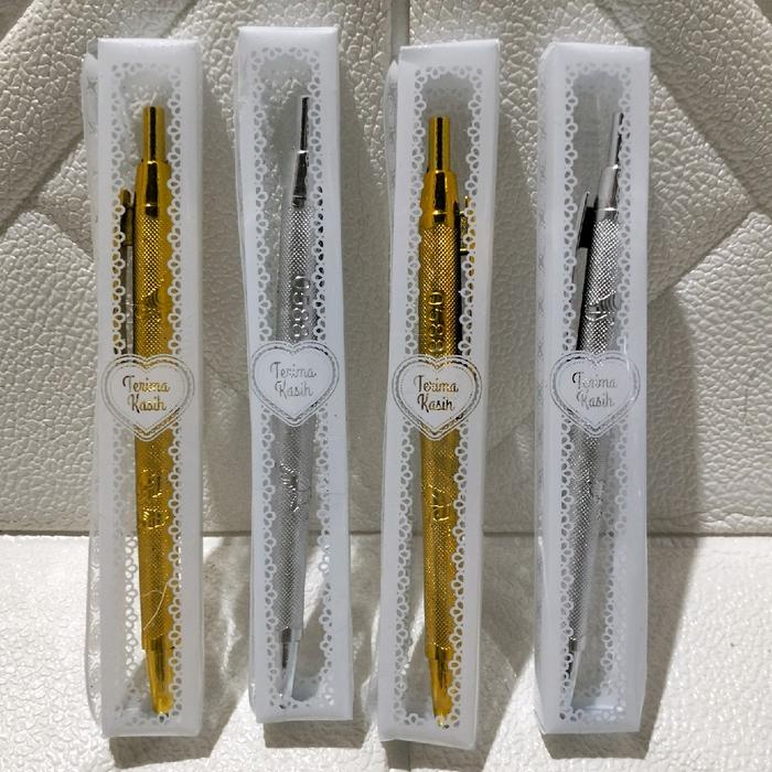 SOUVENIR PULPEN ISI 100 PCS KEMAS MIKA CANTIK souvenir Pernikahan Gold Silver Stationery