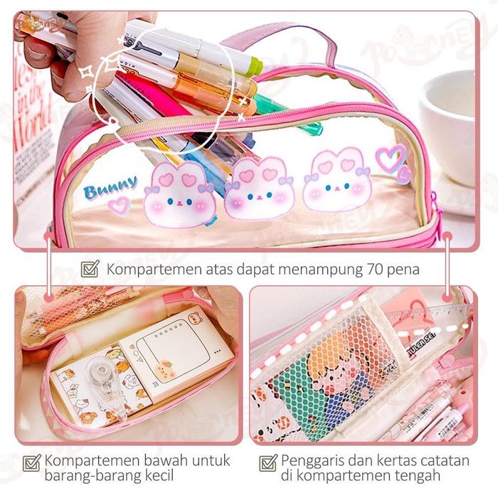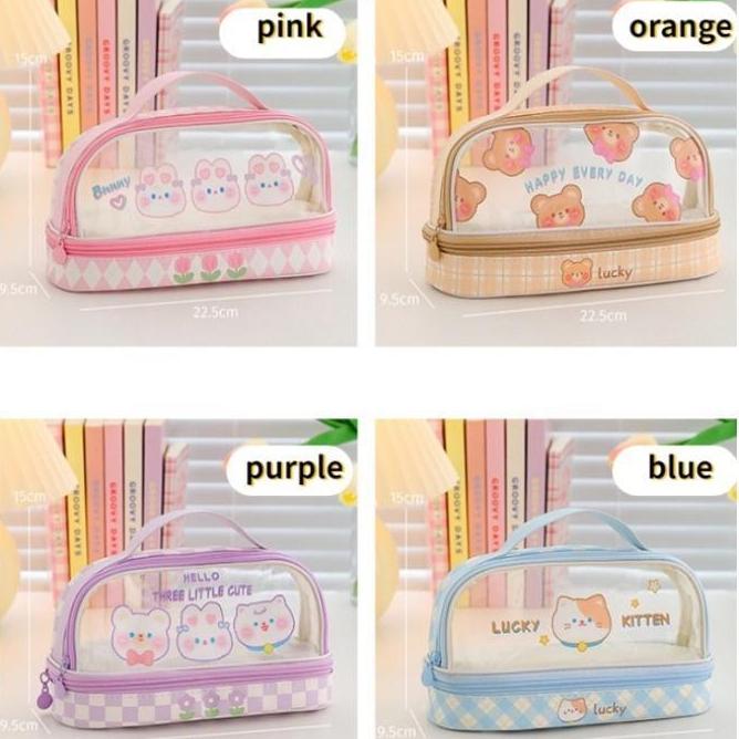 Kartun Baru Kapasitas Pen Bag Storage Bag untuk mahasiswa SMA Junior Portable Cute Simple Stationery