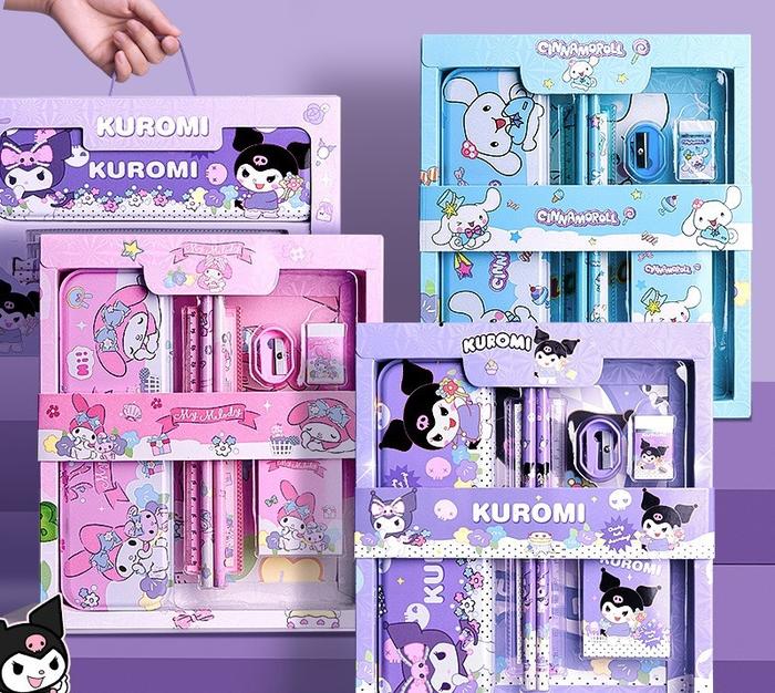 SET ALAT TULIS 7IN1 / KOTAK PENSIL SANRIO / STATIONARY SET CINNAMOROL MELODY KUROMI / KOTAK ANAK