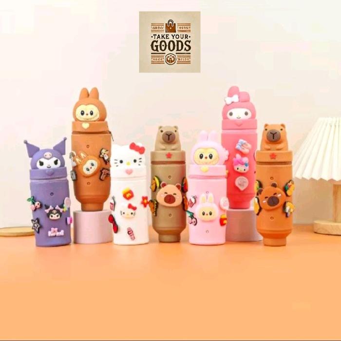 Kotak Pensil/Pulpen Silikon Teleskopik Wanita Dan Anak Karakter Cute Alat Stationery Tulis