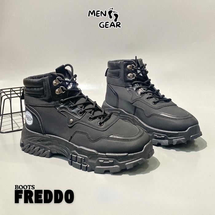 MENFOOTGEAR Freddo Sepatu Boots Pria Formal Kerja Kulit Sintetis Black Choco - BLACK 40