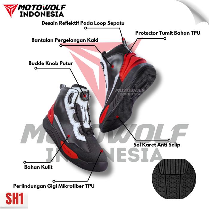 Sepatu Motor Touring Adventure Bahan Kulit Waterproof Boots High Quality Motowolf SH1 - Hitam 40