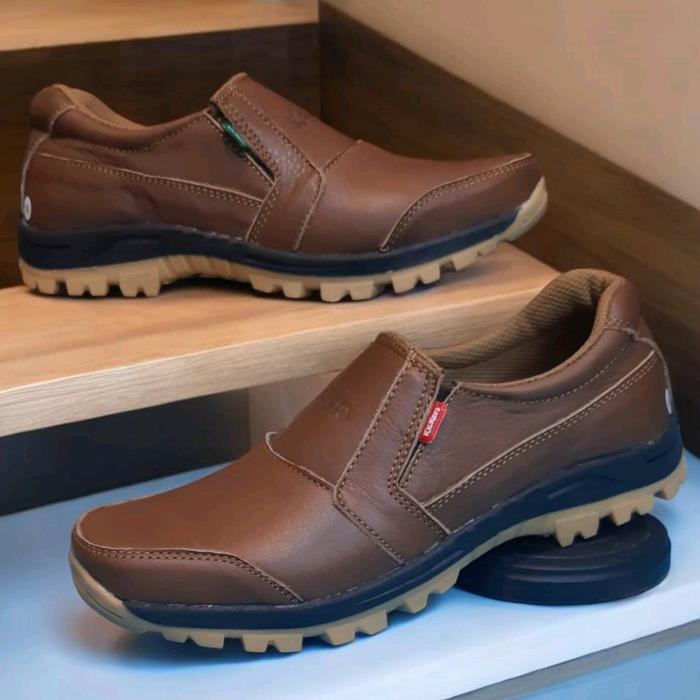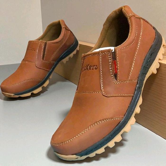 SEPATU PRIA KULIT SAPI ASLI SLIP ON CASUAL - TAN 39