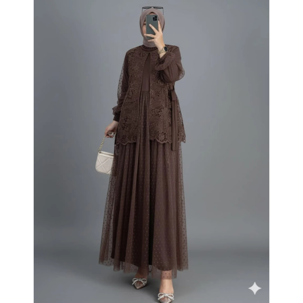 Gamis Mahogany Pesta Mewah Brukat Terpisah 2026 Sakura Dress Velvet mix tille Dress Wanita Remaja