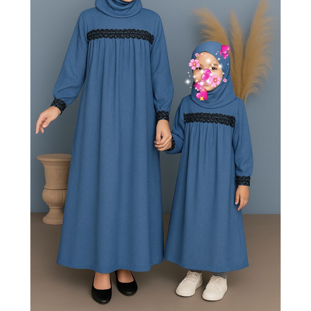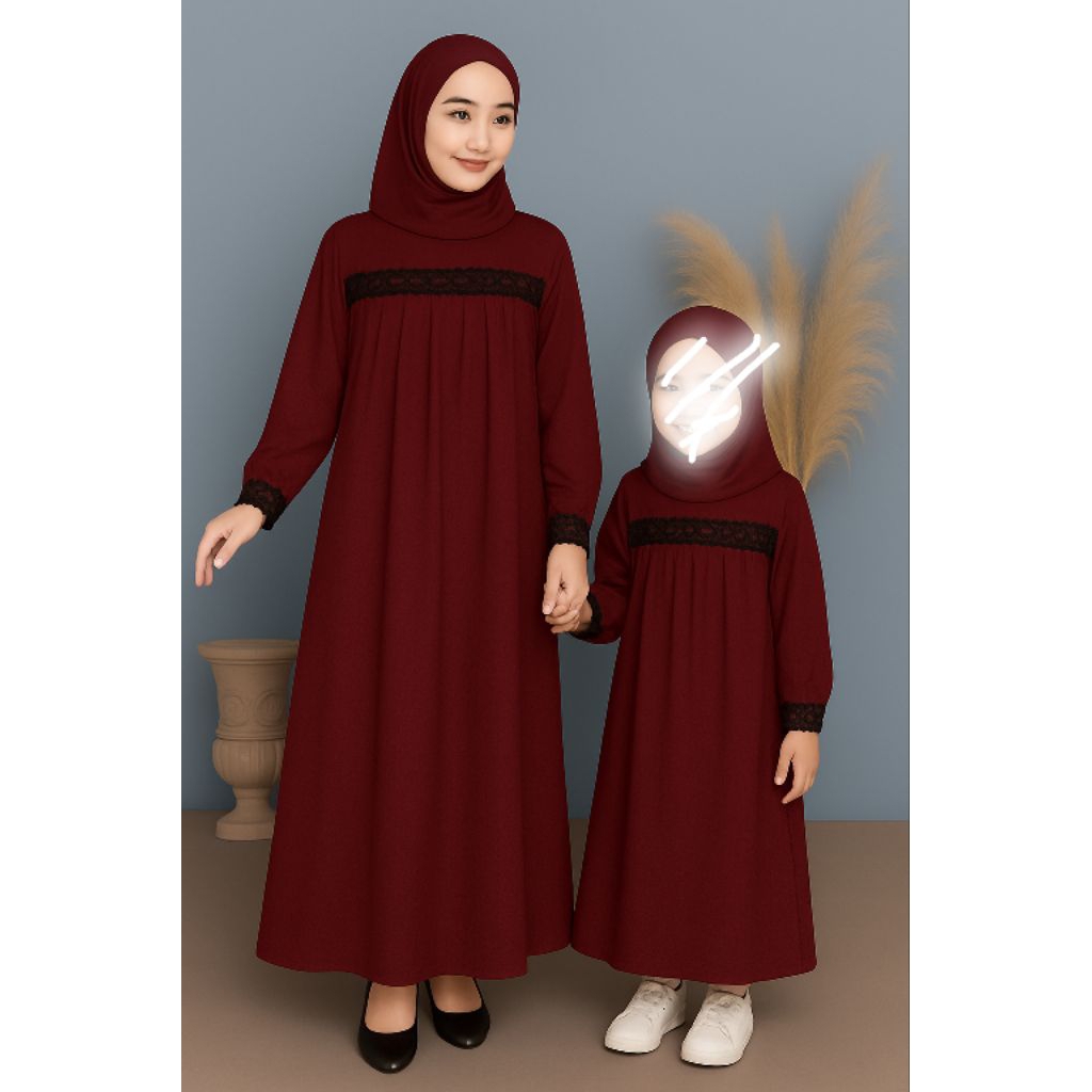 gamis lebaran 2026 terbaru couple ibu anak remaja tangg kombinasi muslimah bahan cringkel premium