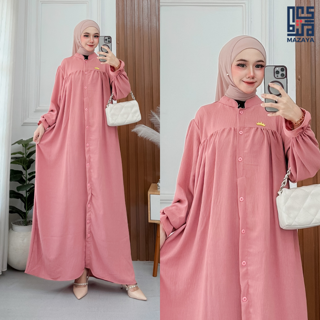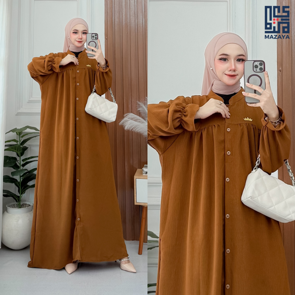 Abaya Calista Dress Gamis Lebaran 2026 Model Gamis Terbaru Jumbo Crinkle Airflow Premium