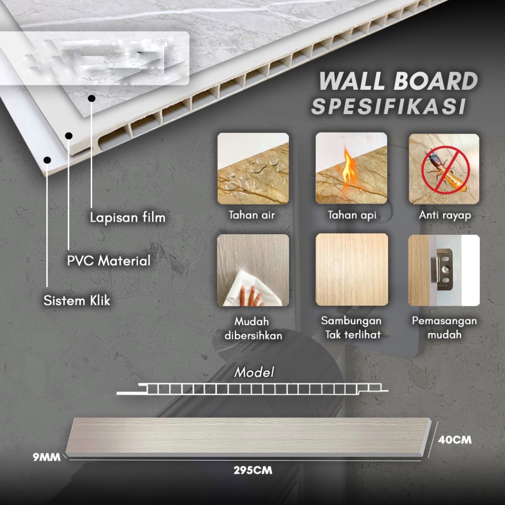 [2.95METER x 40 CM] Wallboard PVC Marmer Kayu Hiasan Dinding/ Wall Board Motif dan Polos Papan Panel Dinding PVC Marmer High Quality