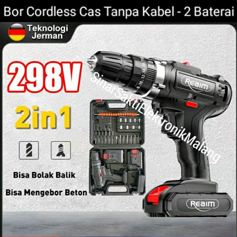 Mesin Bor Cordless Listrik Baterai Tanpa Kabel Charger Cas 108vf 198vf Portable
