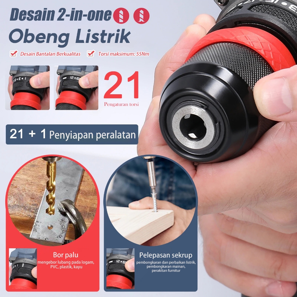 Mesin Bor Baterai Tangan 299VF Dengan 2 Baterai Cordless Drill Battery /Bor listrik