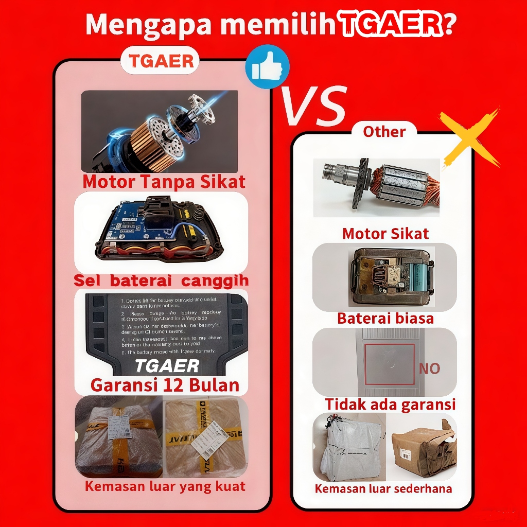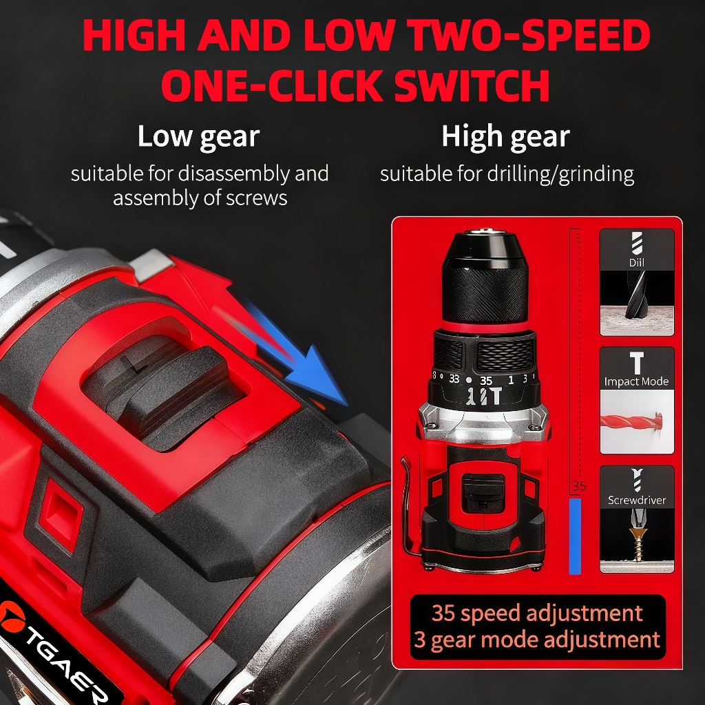 TGAER Brushless 40N M 21V Bor Listrik Mesin Bor Baterai Tangan Cordless Drill Battery Bor Tanpa Kabel Bor Lithium Bor Ba