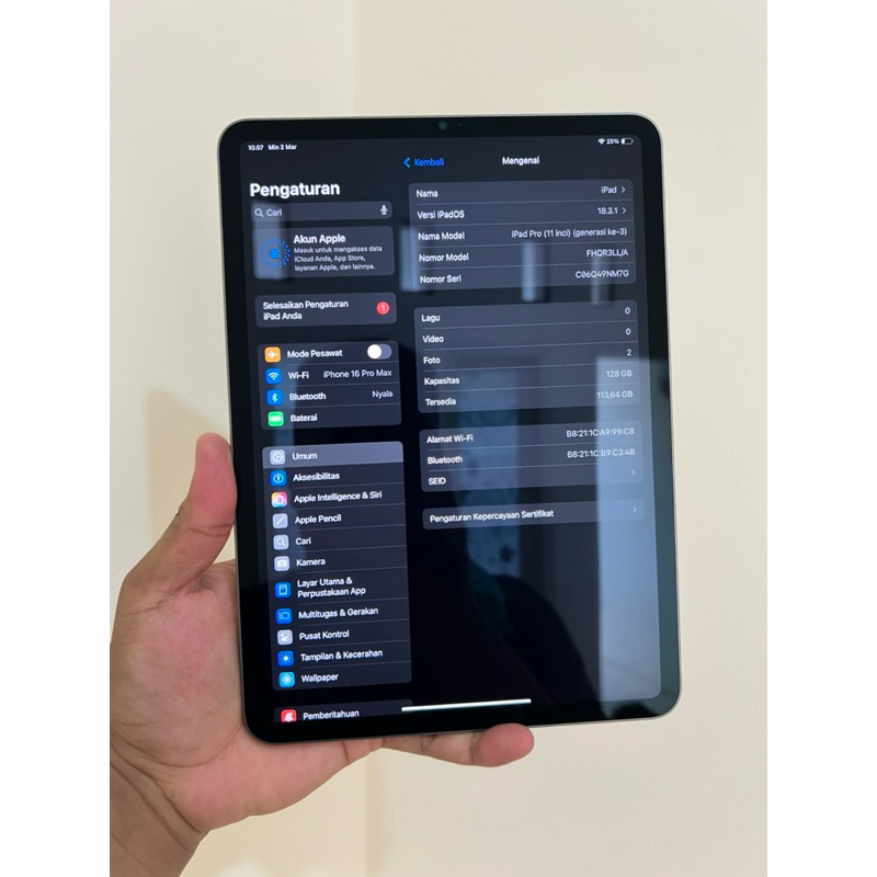 iPad Pro M1 Gen 3 128GB WIFI MULUS FULLSET 11 inchi